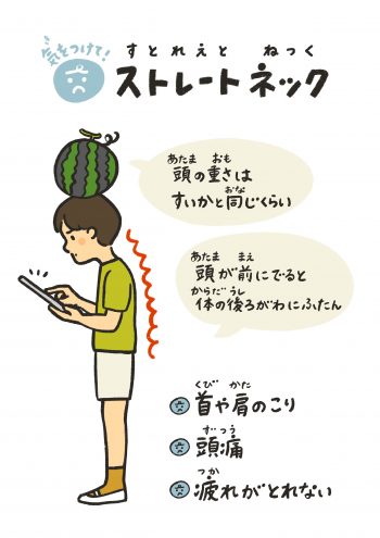 → 下を向く姿勢が続くと、首の筋肉が常に緊張します。 -